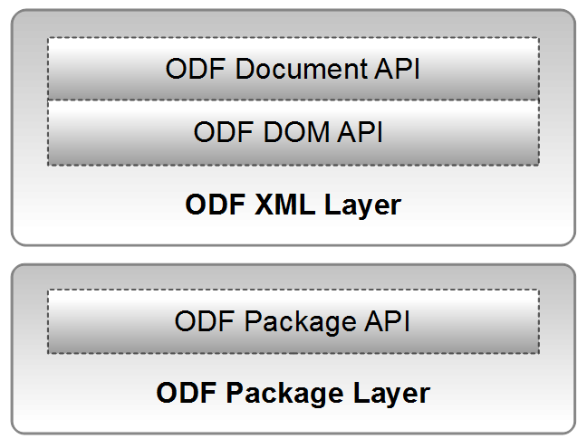 The ODFDOM project's objective is to provide an easy API for reading, writing and manipulating documents of the OpenDocument format (ODF). To archive this, the ODFDOM API follows a layered approach to access documents, as layered design is the robust foundation for a well-designed modular structure.